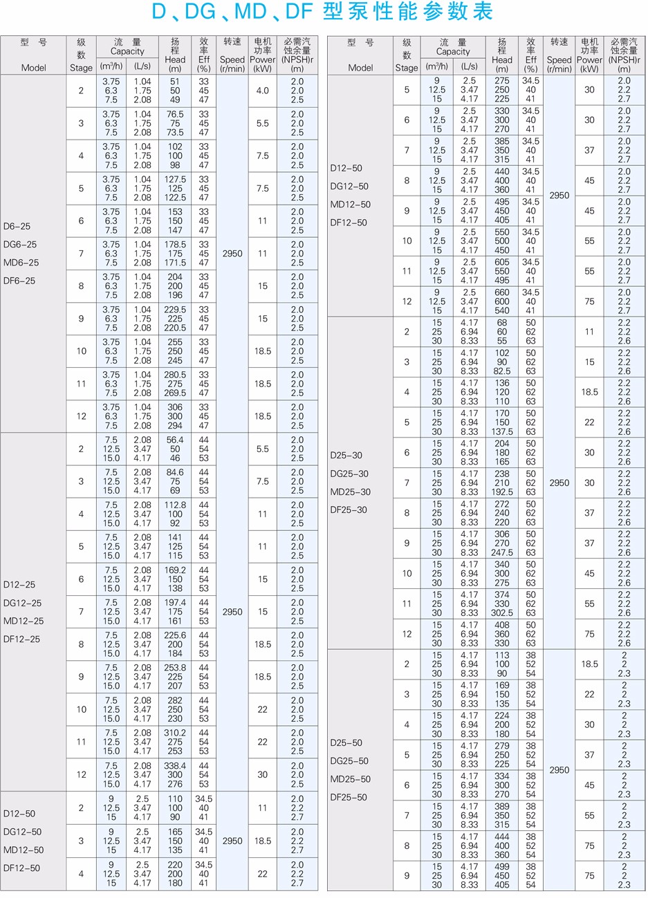 DG型高吸程單吸多級(jí)熱水離心泵供輸送清水或物理及化學(xué)性質(zhì)類(lèi)似于清水的其他液體之用。介質(zhì)溫度不大于105℃,適用于小型鍋爐給水或輸送熱水和類(lèi)似熱水的介質(zhì)。也可根據(jù)用戶(hù)要求制作介質(zhì)溫度不大于150℃場(chǎng)合。